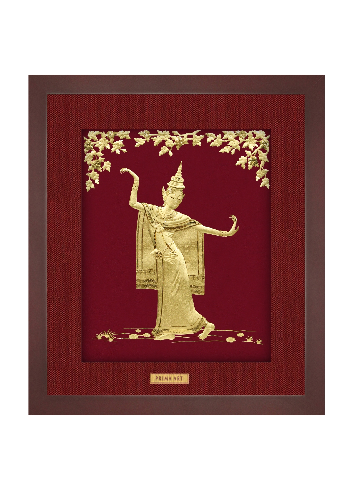 Inspired by the classical Thai dance Chui Chai Benjakai, this artwork captures the elegance and refinement of Thai cultural heritage. The character Benjakai, portrayed with delicate movement and radiant expression, symbolizes beauty, grace, and the artistry of traditional performance. Crafted in 24K gold sheet and set in a refined frame, it is a timeless celebration of Thai artistry, bringing cultural pride and sophistication into any space.
