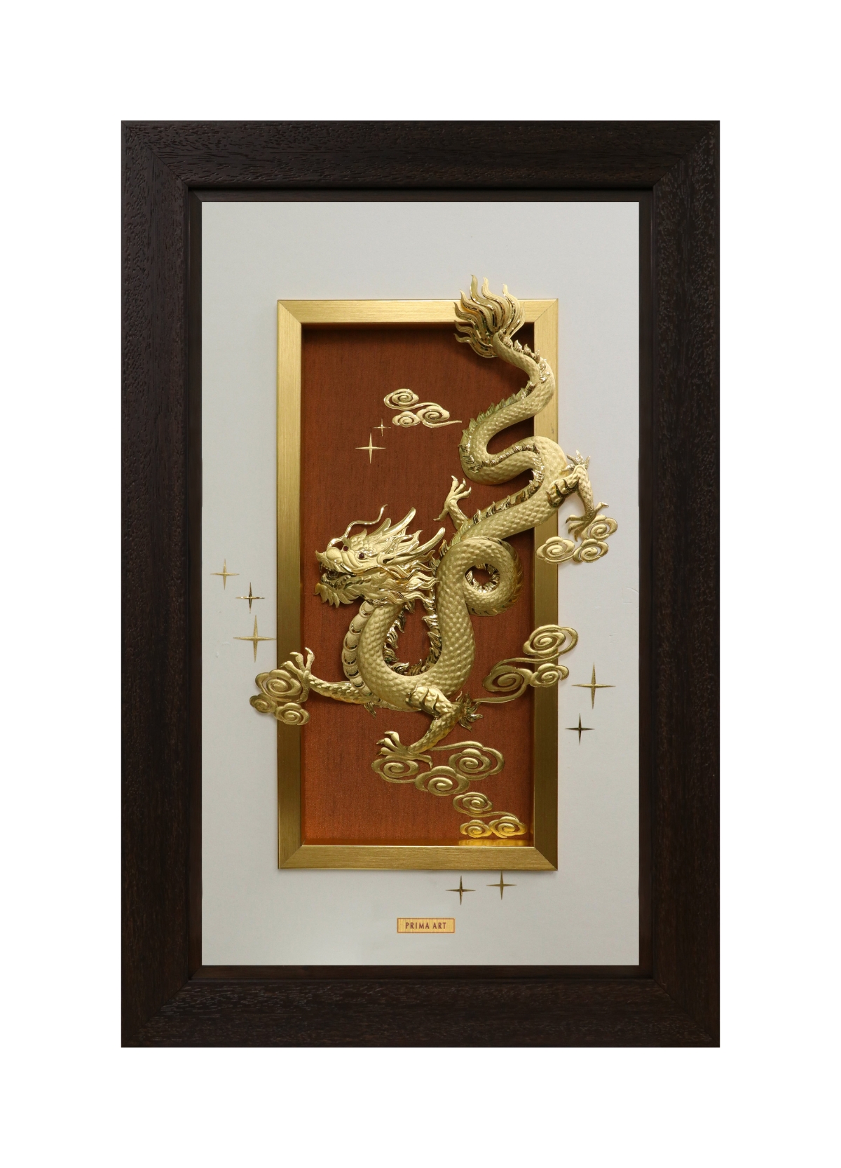 The NOBLE Flying Dragon features a great dragon soaring through the sky, artistically framed in a modern black and white frame with a striking red background. Symbolizing power, strength, and majesty, this piece captures the essence of dynamic energy and elegance. Perfect for any space, it brings an aura of grandeur and the promise of prosperity.