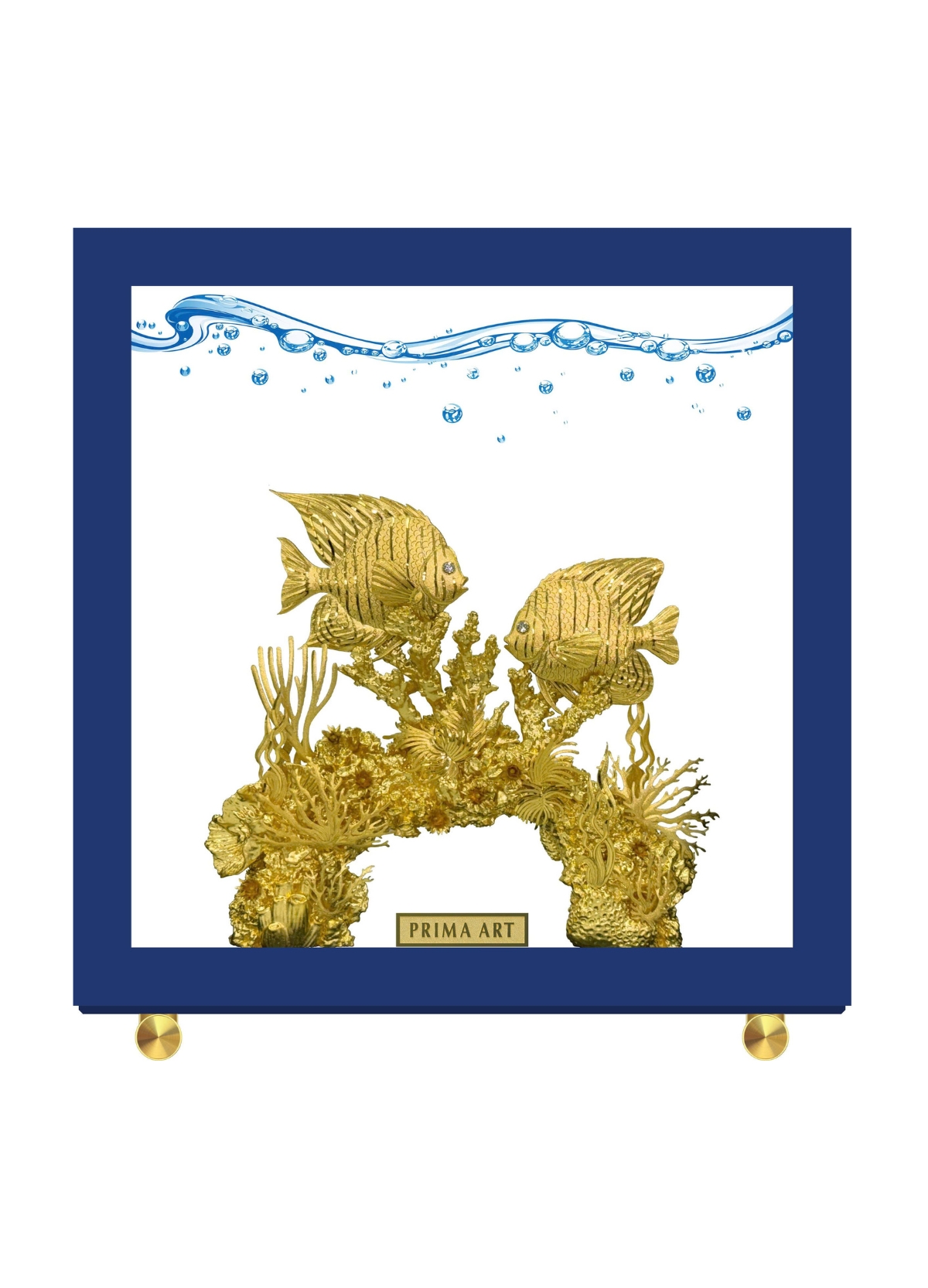 Two graceful angelfish gliding together in harmony symbolize love, unity, and the beauty of companionship. Their elegant movements reflect the rhythm of the ocean, embodying blessings of peace, prosperity, and everlasting bonds. Crafted in radiant 24K gold sheet and presented in a modern see-through frame, this masterpiece captures both artistry and serenity, making it a timeless treasure for celebrating love and meaningful connections.